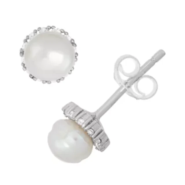 White Cultured Freshwater Pearl Sterling Silver 6.8mm Stud Earrings