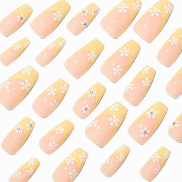 Daisy French Stiletto Press On Vegan Faux Nail Set - 24 Pack