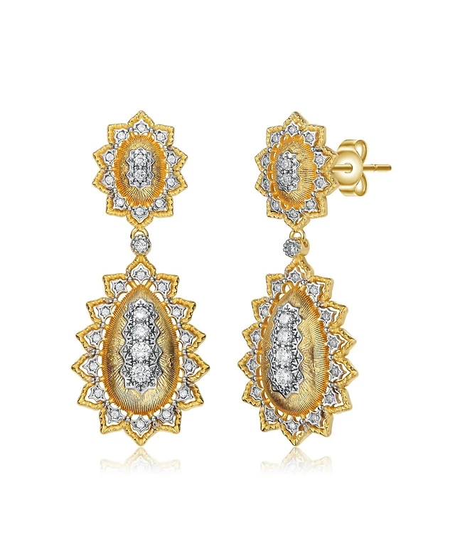 White Gold and 14K Gold Plated Sunny Array Cubic Zirconia Drop Earrings