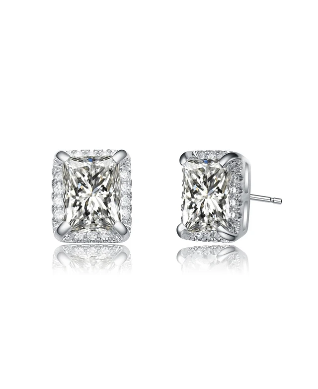 White Gold Plated Cubic Zirconia Square Stud Earrings