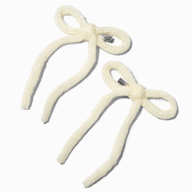 White Knit Hair Bow Clips - 2 Pack