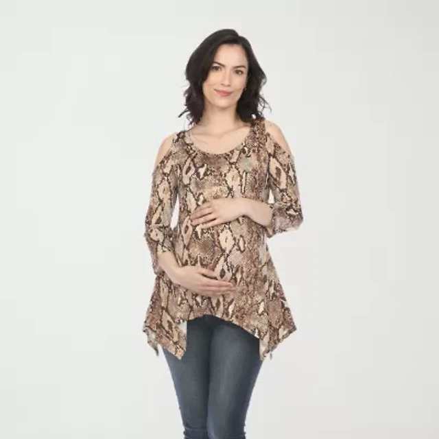 White Mark Maternity Ganette Womens Scoop Neck 3/4 Sleeve Tunic Top