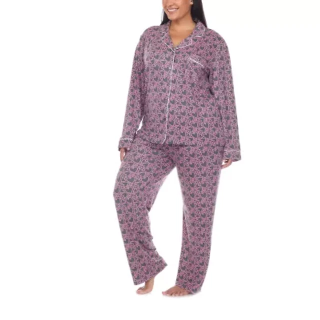 White Mark Womens Long Sleeve 2-pc. Plus Pajama Sets
