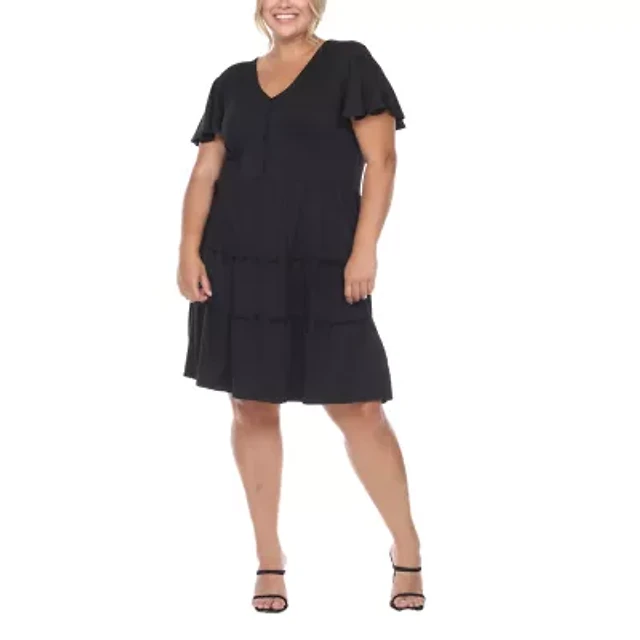 White Mark Plus Short Sleeve V-neck Tiered Midi Dress