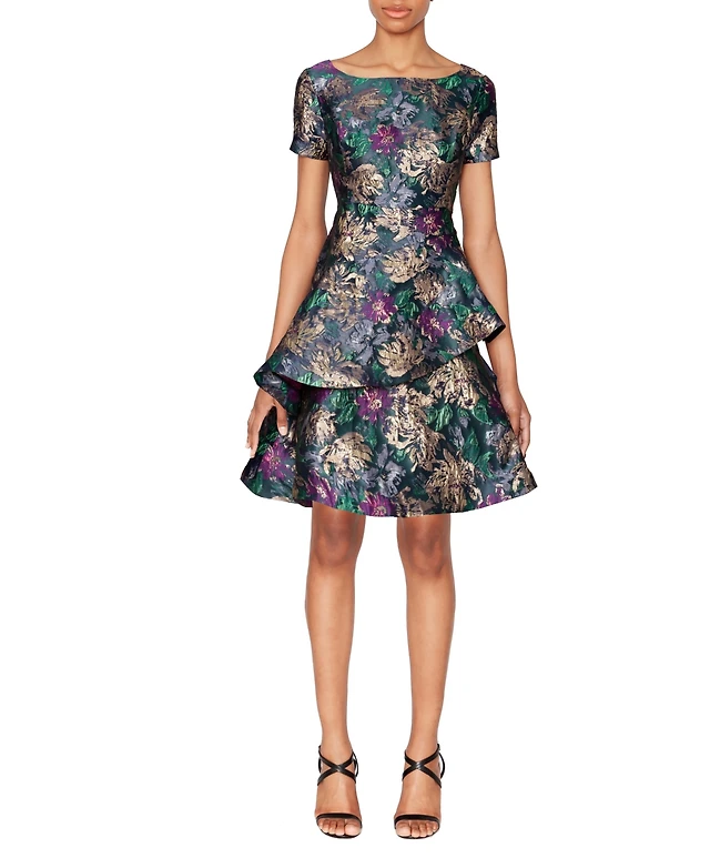 Taylor Women's Printed Pleated Tiered Midi Dress