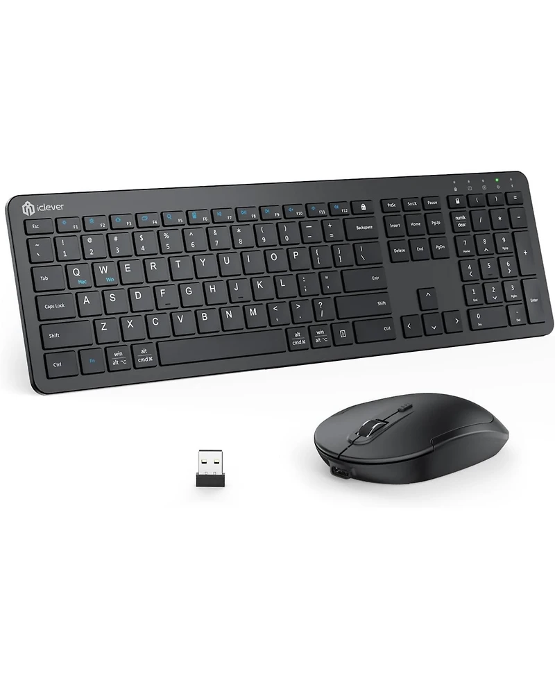 Full Size Wireless Combo: Full-size keyboard, engineering-level abs construction with a 10°tilt, and a quite low-profile mouse. All cluster-free operation makes it an ideal choice for office use.