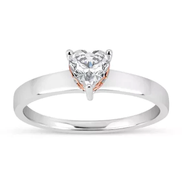 Womens 1 1/10 CT. T.W. White Zirconia Sterling Silver Heart Solitaire Cocktail Ring