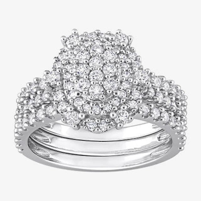 Womens 1 CT. T.W. Natural White Diamond 14K Gold Round Side Stone Halo Bridal Set