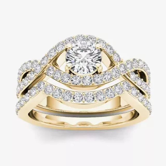 Womens 1 1/2 CT. T.W. Natural White Diamond 14K Gold Round Side Stone Crossover Bridal Set