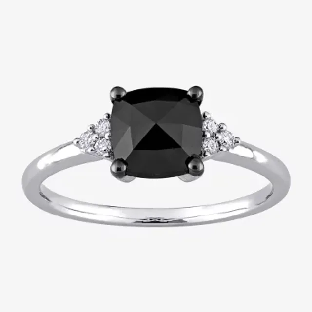 Womens 1 1/3 CT. T.W. Natural Black Diamond 14K White Gold Cushion Side Stone Engagement Ring