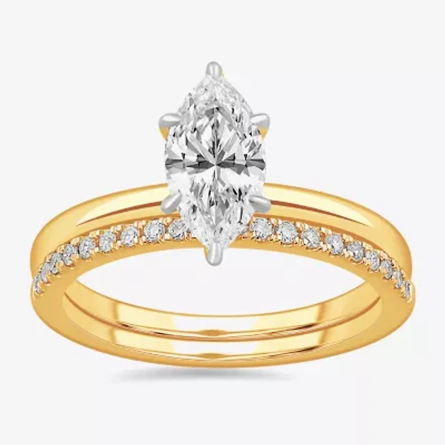 Womens 1 1/4 CT. T.W. Lab Grown White Diamond 14K White Gold Marquise Solitaire Bridal Set