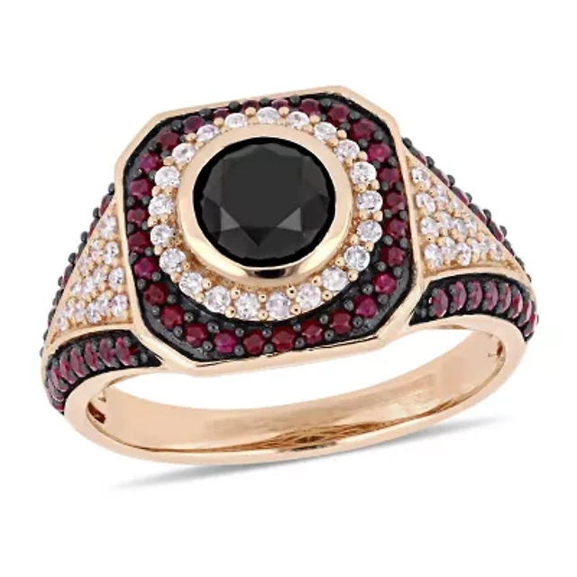 Midnight Black Womens 1 CT. T.W. Natural Diamond 10K Rose Gold Cocktail Ring
