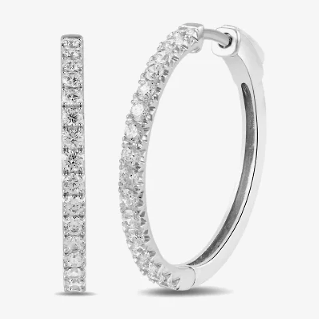 Womens 1 CT. T.W. Lab Grown White Diamond 10K Gold 23.3mm Hoop Earrings