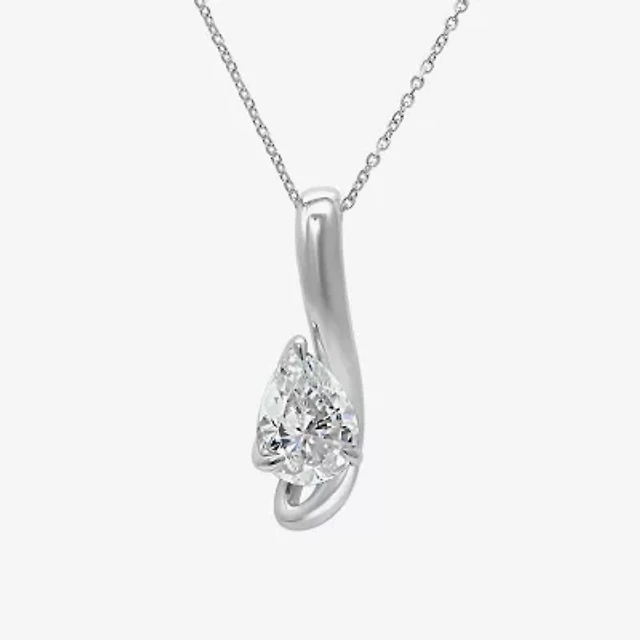 Womens 1 CT. T.W. Lab Grown White Diamond 10K White Gold Pear 18 Inch Pendant Necklace