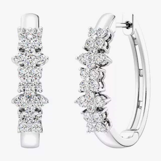 Womens 1 CT. T.W. Lab Grown White Diamond 10K White Gold 14.5mm Hoop Earrings