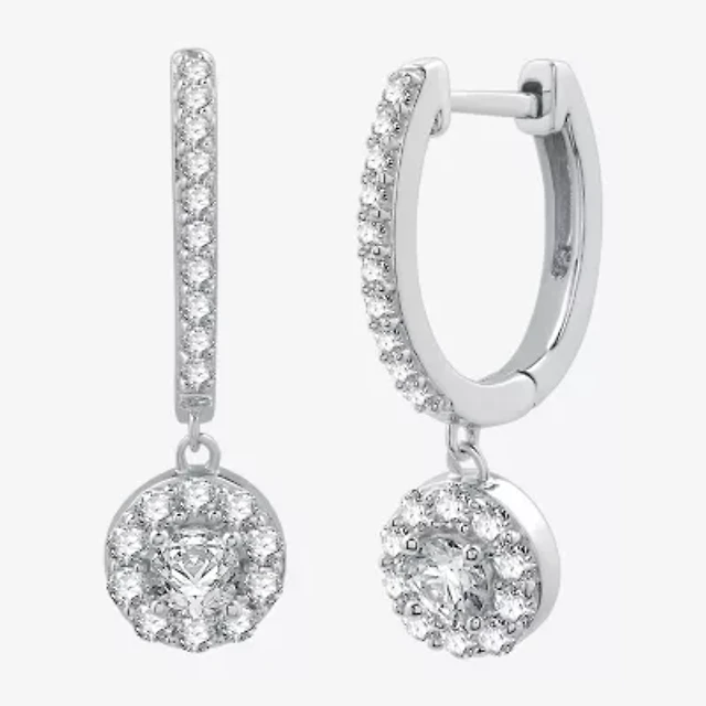 Womens 1 CT. T.W. Lab Grown White Diamond 10K White Gold 14.5mm Hoop Earrings
