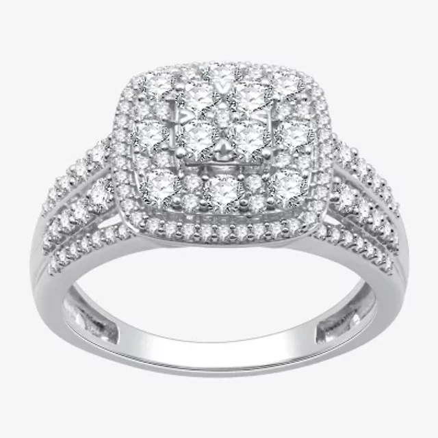 Womens 1 CT. T.W. Natural White Diamond Sterling Silver Halo Cocktail Ring