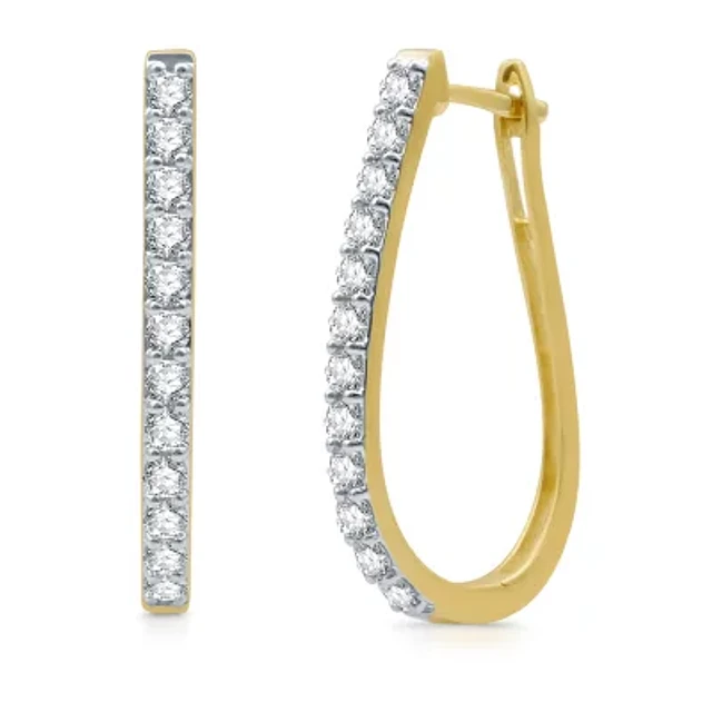 Womens 1/2 CT. T.W. Natural White Diamond 10K Gold 19.5mm Hoop Earrings