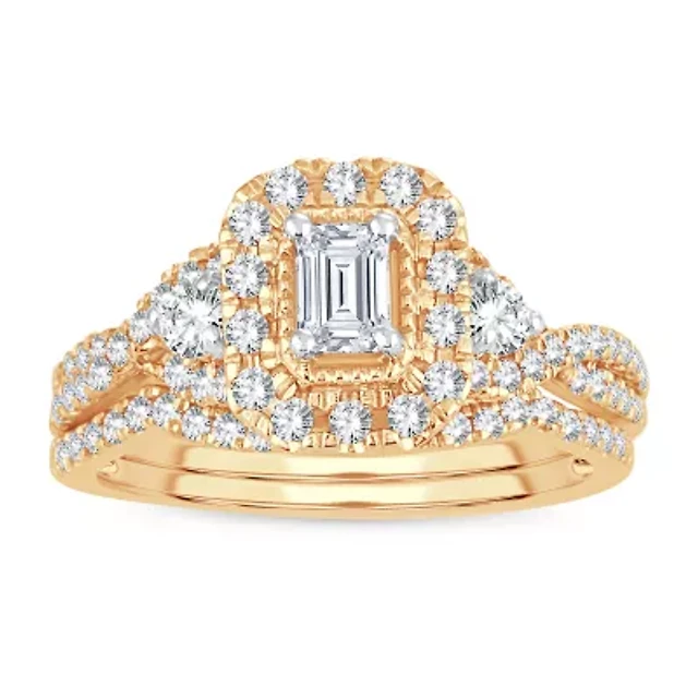Womens 1 CT. T.W. Natural White Diamond 10K Gold Rose Cushion Bridal Set