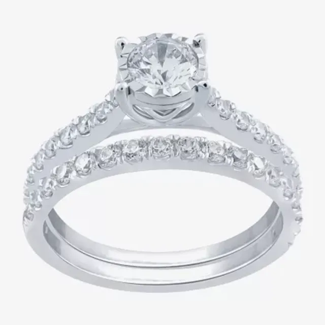 Womens 1 CT. T.W. Natural White Diamond 10K Gold Round Side Stone Bridal Set