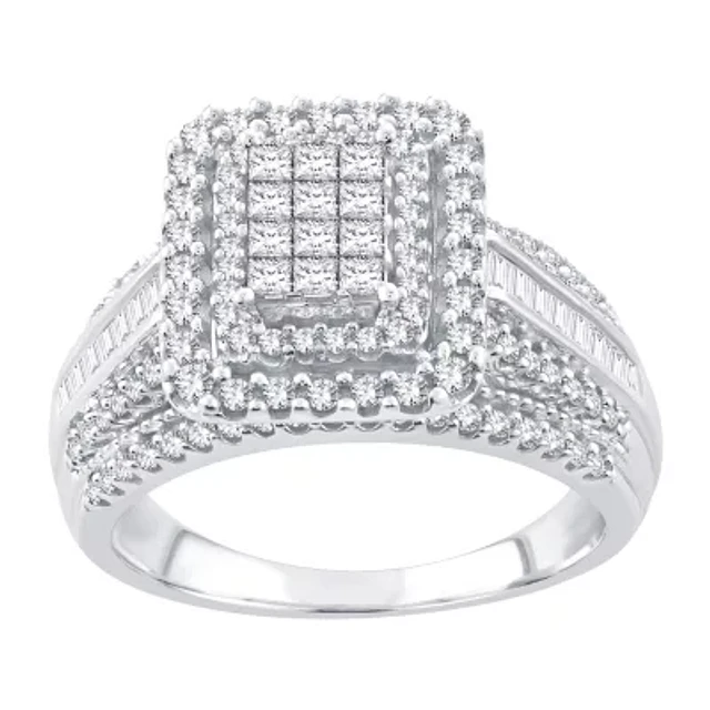 Womens 1 CT. T.W. Natural White Diamond 10K Gold Side Stone Halo Engagement Ring