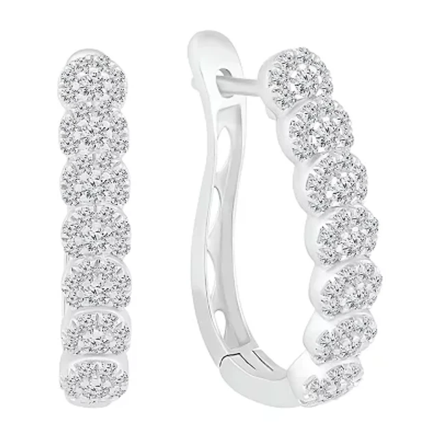 Womens 1/2 CT. T.W. Natural White Diamond 10K White Gold 18.6mm Hoop Earrings