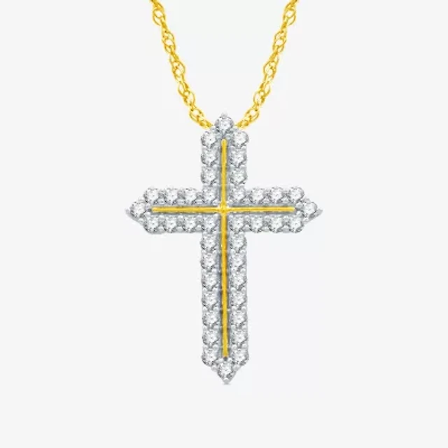 Womens 1 CT. T.W. Natural White Diamond 10K or 14K Gold Cross Pendant Necklace