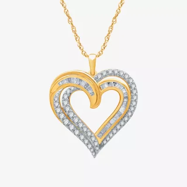 Womens 1 CT. T.W. Natural White Diamond 14K Gold Over Silver Heart 18 Inch Pendant Necklace