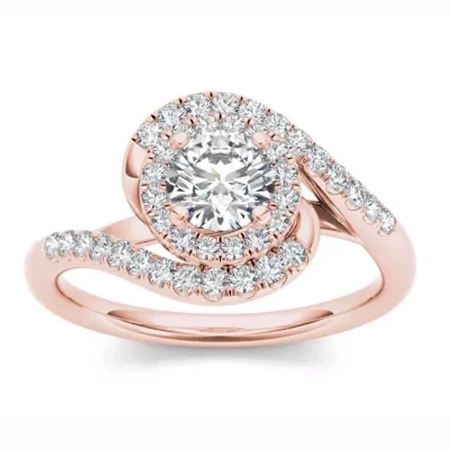Womens 1 CT. T.W. Natural White Diamond 14K Gold Round Bypass Halo Engagement Ring