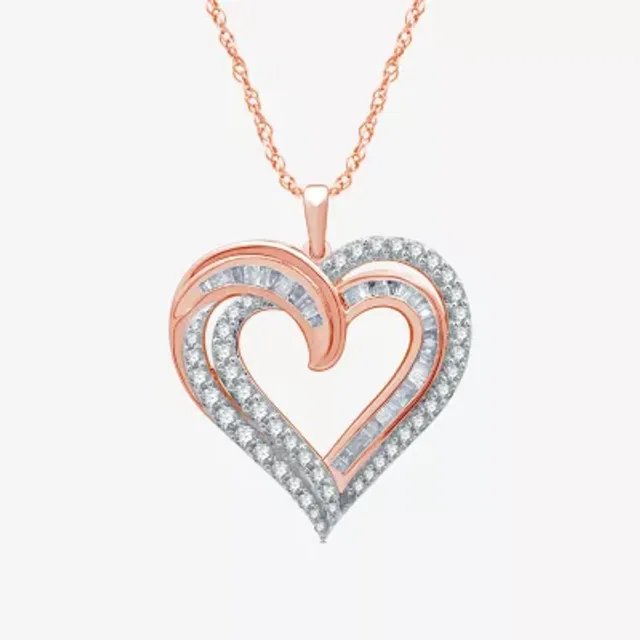 Womens / CT. T.W. Lab Grown White Diamond 14K Rose Gold Over Silver Sterling Silver Heart Pendant Necklaces