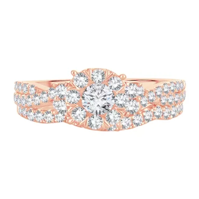 Womens 1 CT. T.W. Natural White Diamond 14K Rose Gold Round Bridal Set