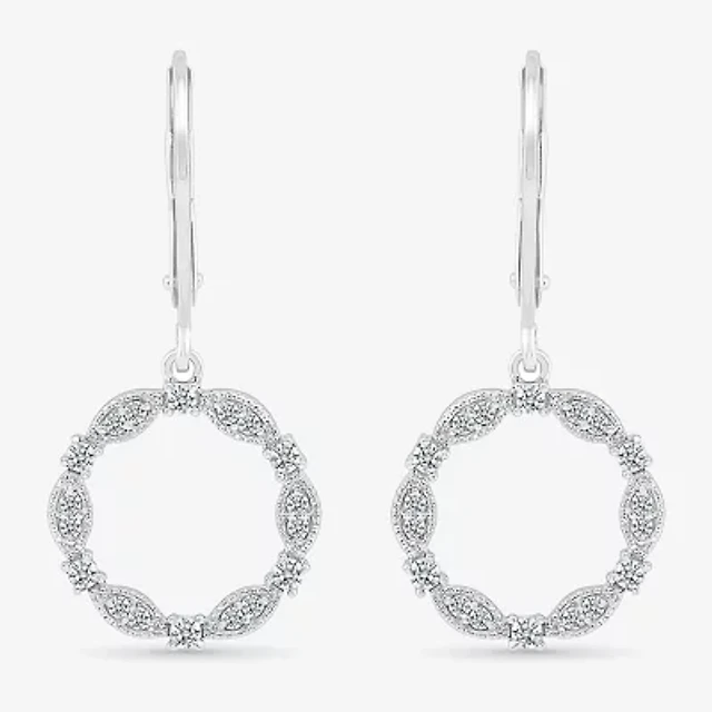 Womens 1/ CT. T.W. Natural White Diamond Sterling Silver Circle Drop Earrings