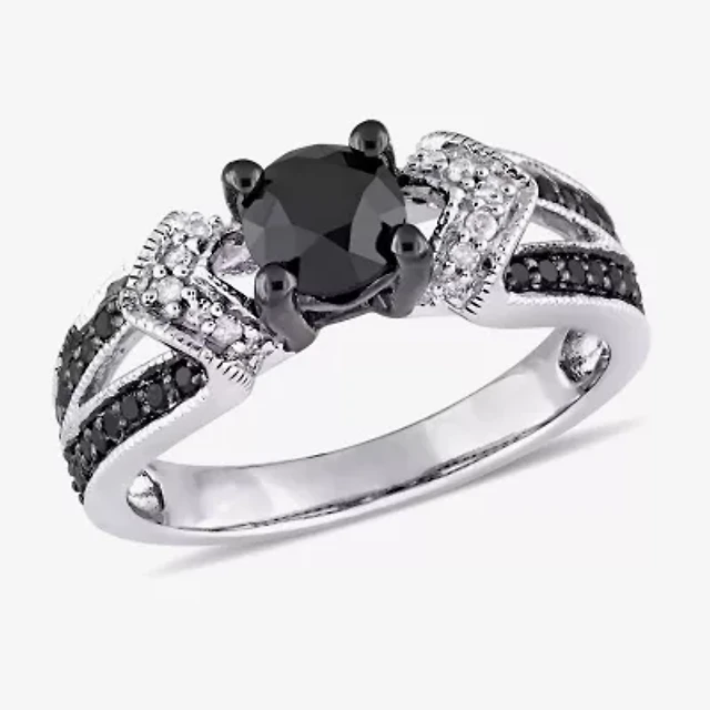 Womens 1 CT.T.W. Color Enhanced Round Black & White Diamond Sterling Silver Engagement Ring