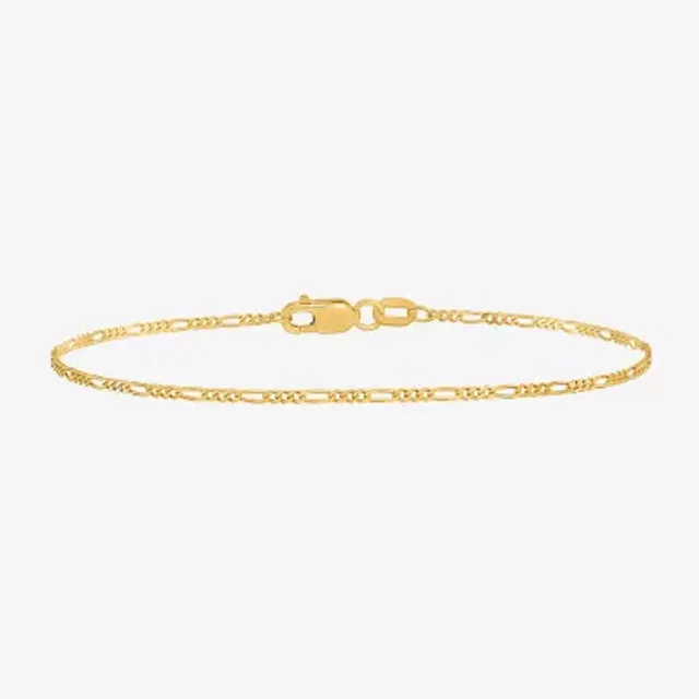 Womens 10K Gold 9 Inch Hollow Figaro Ankle Bracelet
