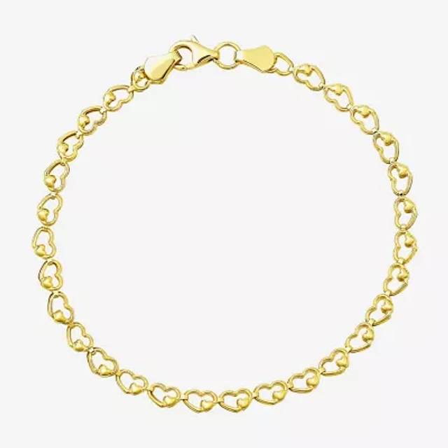 Womens 10K Gold 7.25 Inch Hollow Link Heart Chain Bracelet