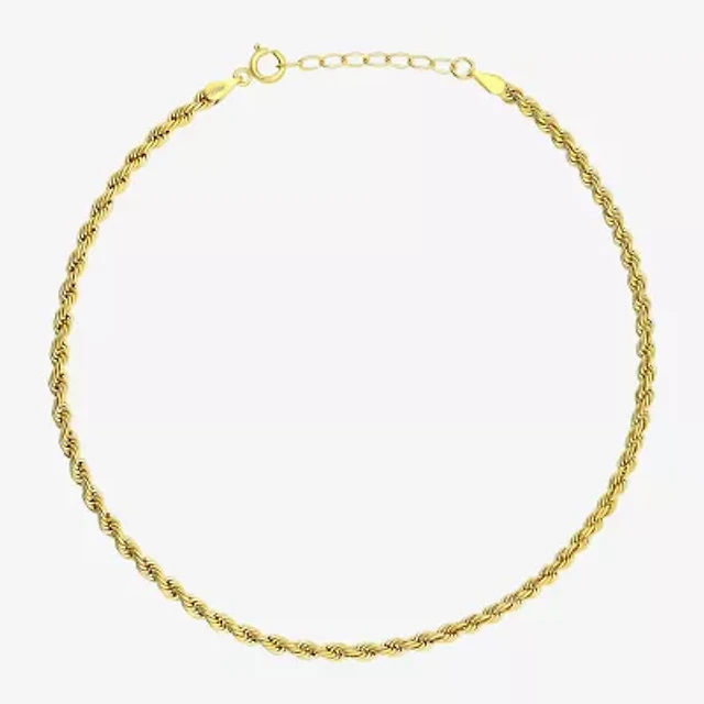 Womens 10K Gold 9 Inch Hollow Rope Ankle Bracelet