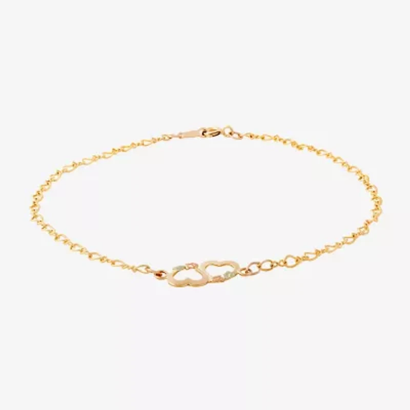 Womens 10K Tri-Color Gold 8 1/2 Inch Hollow Link Heart Ankle Bracelet