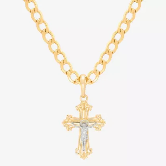 Womens 10K Two Tone Gold Cross 18 Inch Pendant Necklace