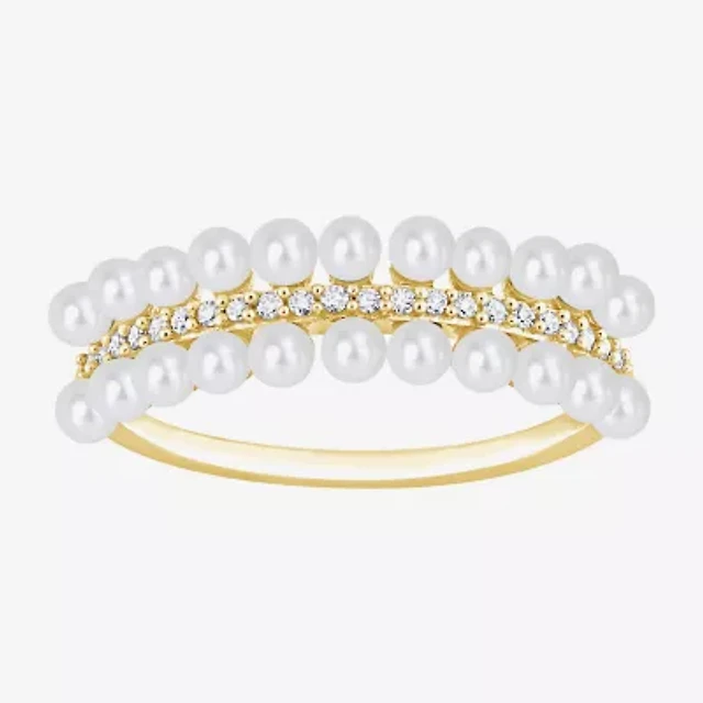 Womens 1/10 CT. T.W. 2MM White Cultured Freshwater Pearl 10K Gold Cocktail Ring