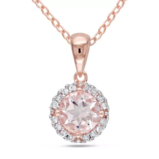 Womens Genuine Pink Morganite 10K Rose Gold Round 17 Inch Pendant Necklace