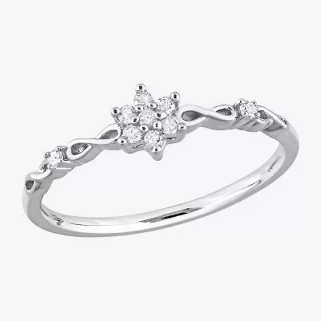 Womens Diamond Accent Natural White Sterling Silver Flower Delicate Stackable Ring