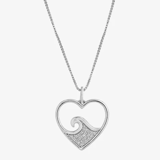 Womens 1/10 CT. T.W. Natural White Diamond Sterling Silver Heart 18 Inch Pendant Necklace