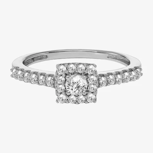 Womens 1/2 CT. Natural White Diamond 10K Gold Cushion Halo Engagement Ring