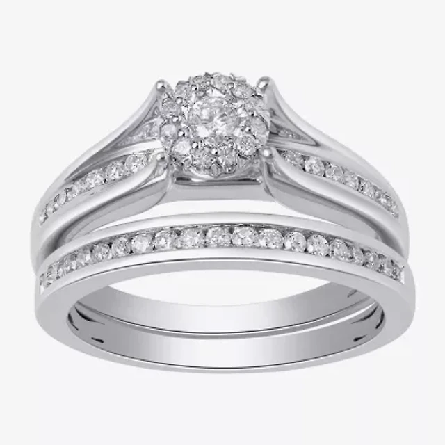 Womens 1/2 CT. T.W. Genuine White Diamond 10K Gold Round Side Stone Halo Bridal Set