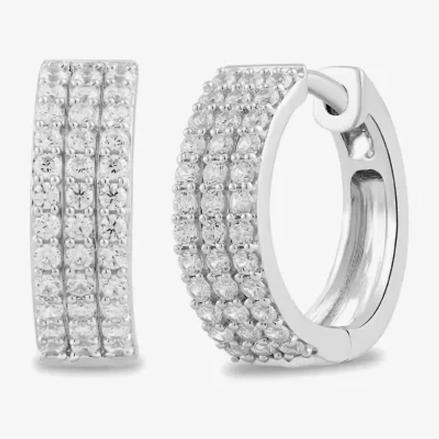Womens 1/2 CT. T.W. Lab Grown White Diamond Sterling Silver 14.4mm Hoop Earrings