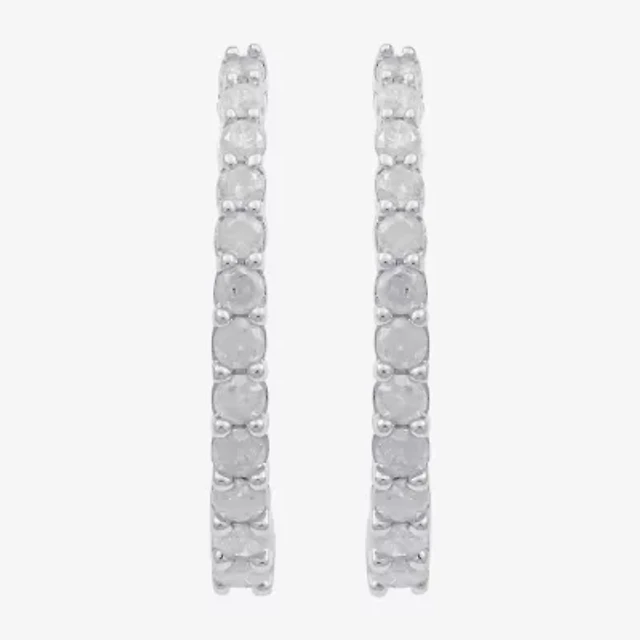 Limited Quantities! Womens 1/2 CT. T.W. Natural White Diamond 14K White Gold 29.2mm Hoop Earrings