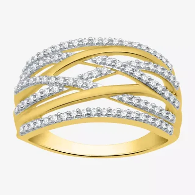 Womens 2MM 5/8 CT. T.W. Natural White Diamond 10K Gold Cluster Crossover Band