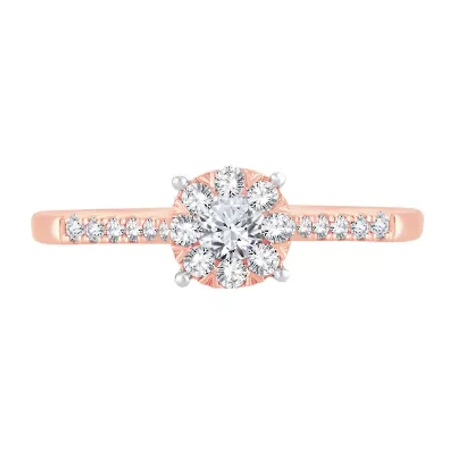 Womens 1/3 CT. T.W. Natural White Diamond 10K Rose Gold Engagement Ring