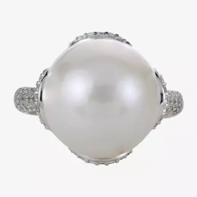 Womens Diamond Accent White Cultured Freshwater Pearl Sterling Silver Cocktail Ring