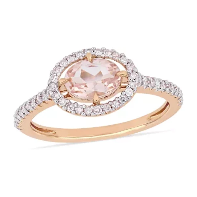 Womens Diamond Accent Genuine Pink Morganite 14K Rose Gold Cocktail Ring